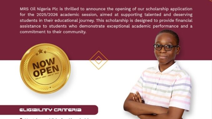Education in Nigeria can be expensive, and many families struggle to support bright children who have the potential to do more. To help ease that burden, MRS Oil Nigeria Plc has introduced its 2025/2026 scholarship scheme. This initiative is designed to support academically outstanding students and encourage them to continue striving for excellence.