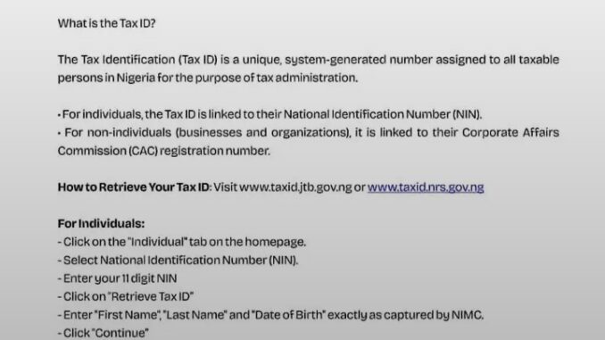 It is important to note that the Tax ID is strictly for tax administration purposes only. Authorities have assured Nigerians that the introduction of the Tax ID does not authorize any bank account deductions, debits, or account closures due to tax non-compliance. Instead, it is designed to enhance transparency, accountability, and ease of access to tax services nationwide.