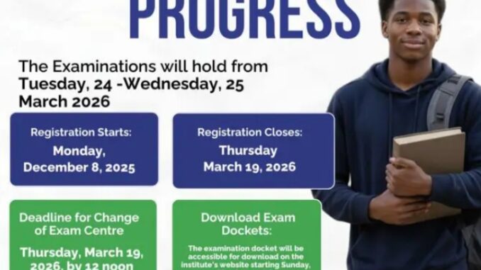 Examination docketsa will be available for download from Sunday, 22nd March 2026 on the Institute’s website, and candidates must print and present these dockets at their examination centres.