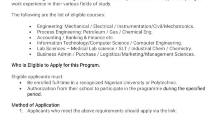 Eligibility Criteria for INDORAMA SIWES 2025/2026