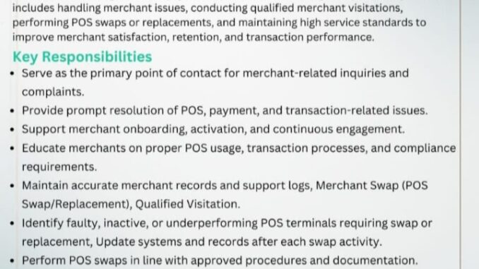Another key responsibility of the Merchant Support Officer involves POS terminal management. In the fast-paced world of digital payments, device reliability is non-negotiable. Officers are tasked with identifying inactive, faulty, or underperforming POS terminals and taking prompt action to resolve such issues.